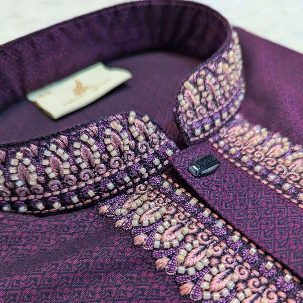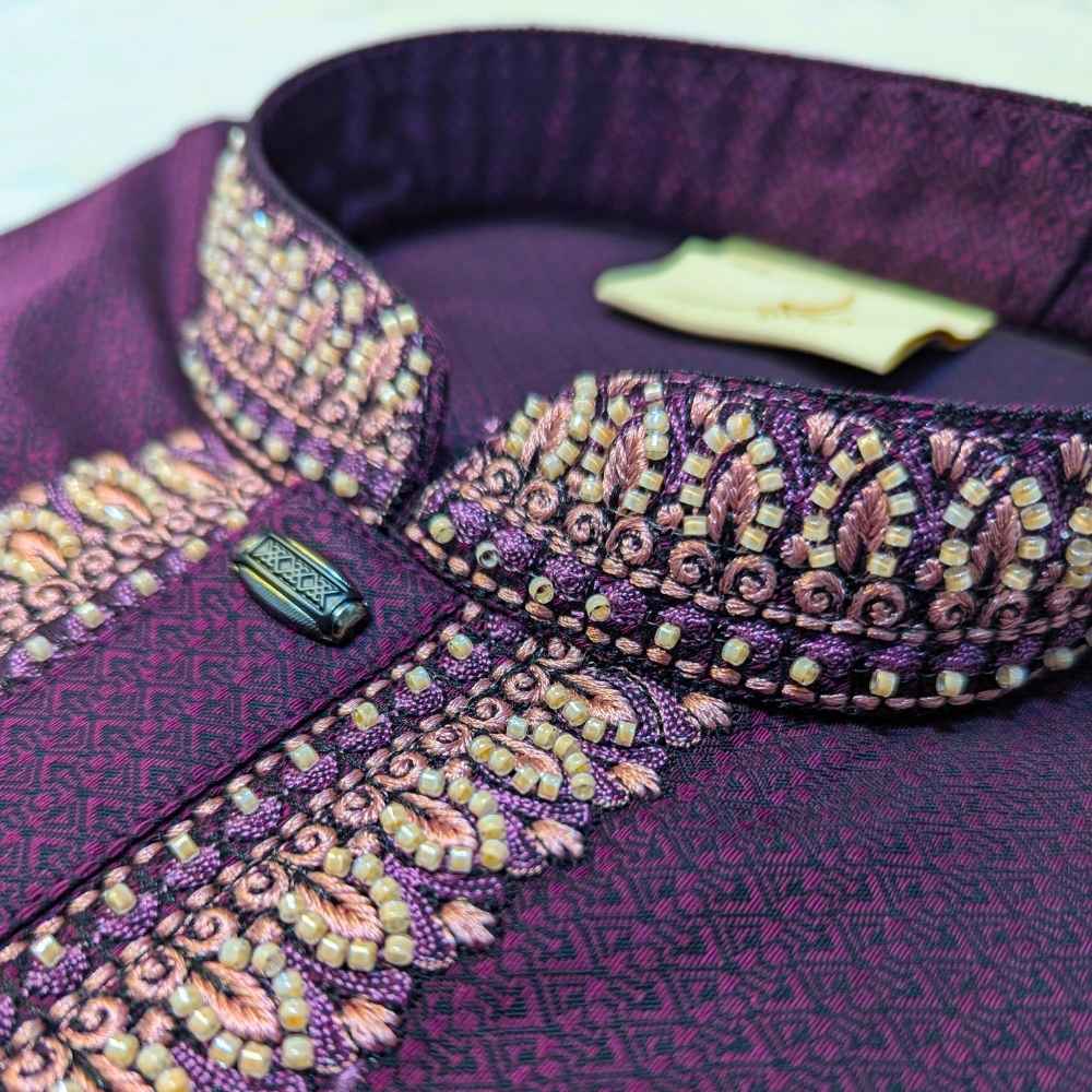 Step into a new era of ethnic fashion with The Midnight Garnet. This Panjabi is for the man who demands perfection. By combining a rich Jacquard weave with high-tech machine bead embroidery, we’ve created a look that is both sharp and incredibly durable.